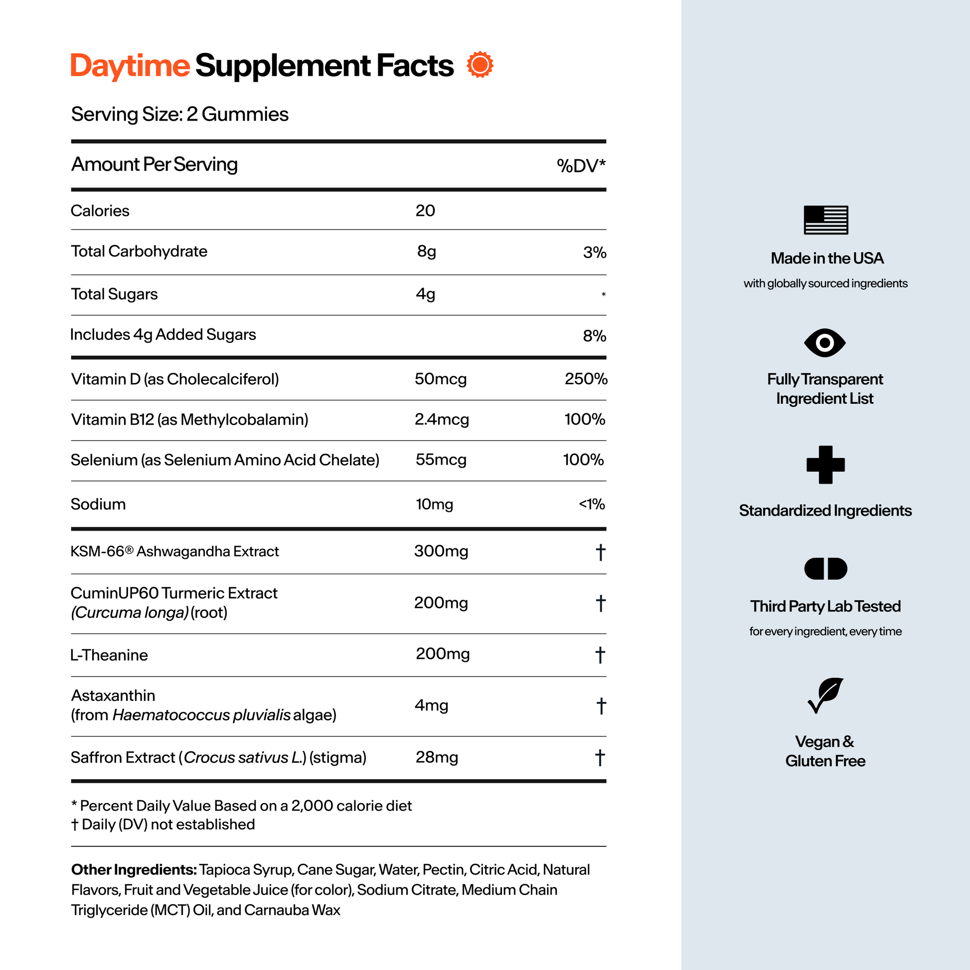Ingredients like Vitamin D3 and Saffron support smooth, steady energy.
